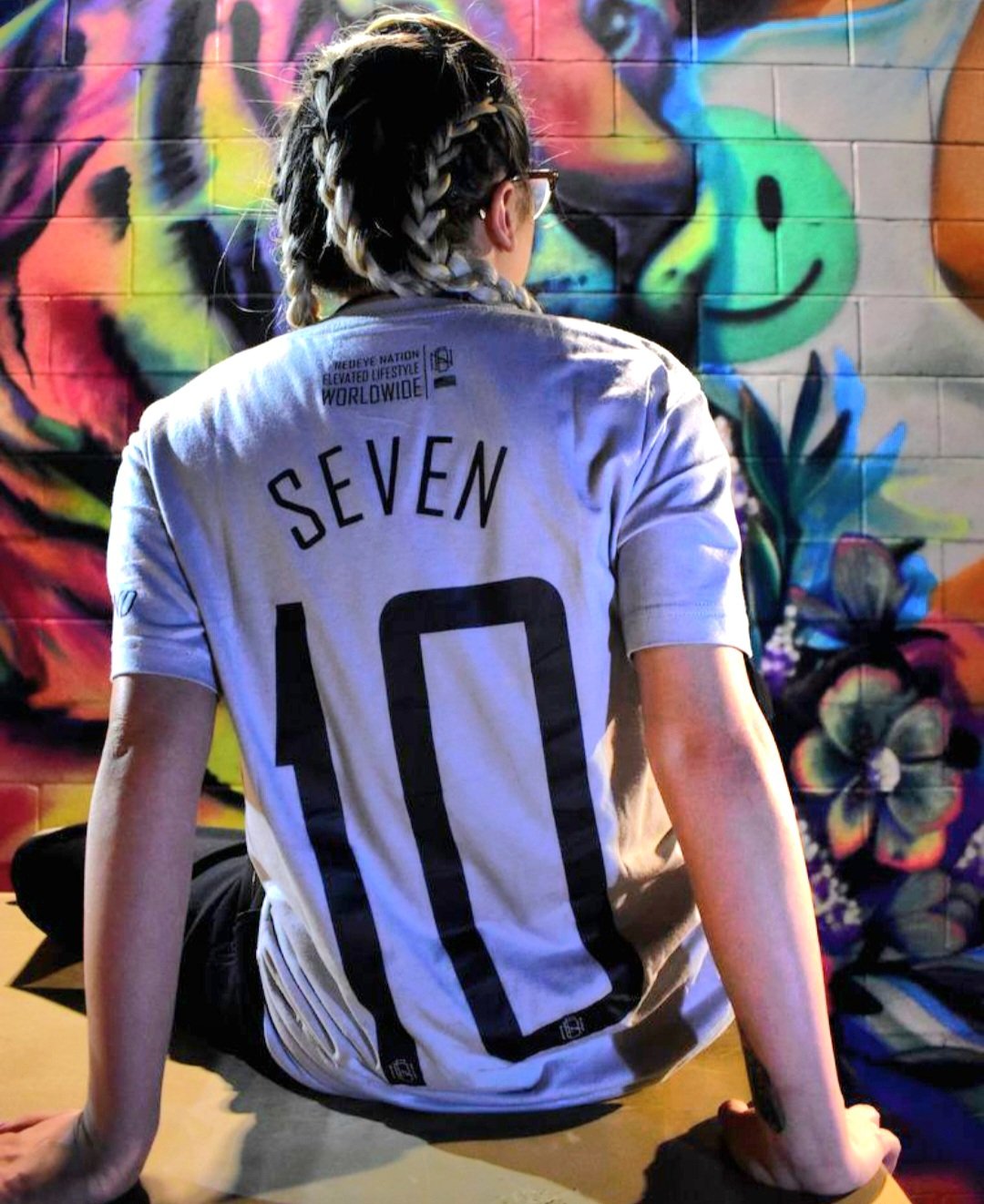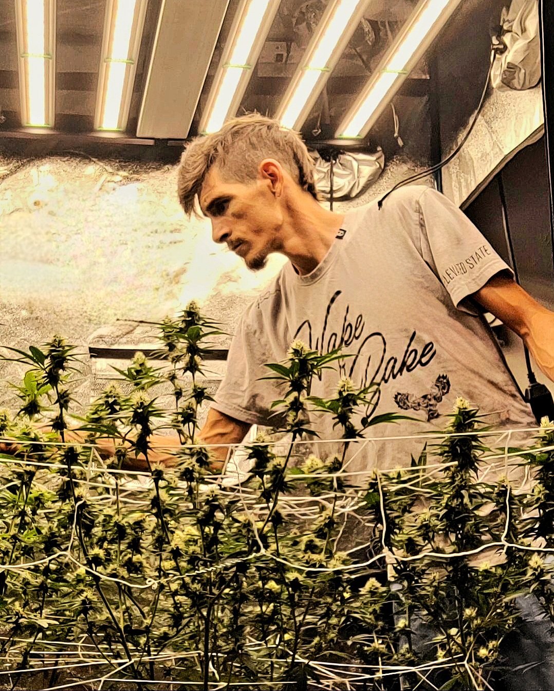 Wake & Bake on the front, Elevated State of Mind on the left sleeve, THC Molecule on the right shoulder& Seven 10 on the back, ONLY in Grey.
